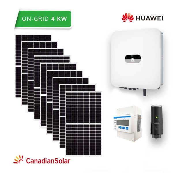 Kit sistem fotovoltaic 4 kW hibrid trifazat, invertor Huawei si 9 panouri fotovoltaice Canadian Solar 455W
