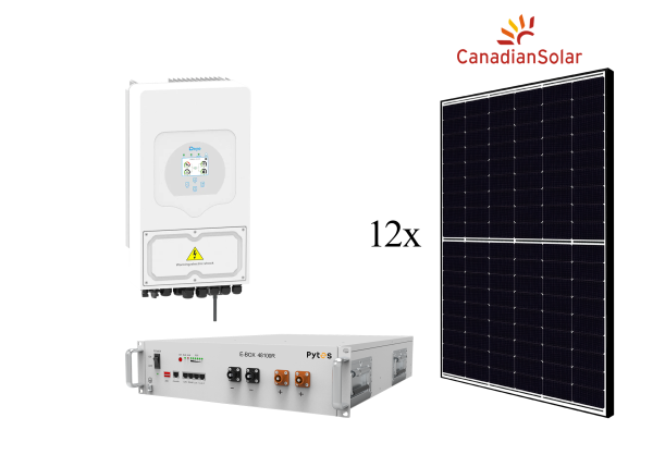 Kit sistem fotovoltaic OFF-GRID 5kW monofazat, invertor DEYE și 12 panouri Canadian Solar 425W